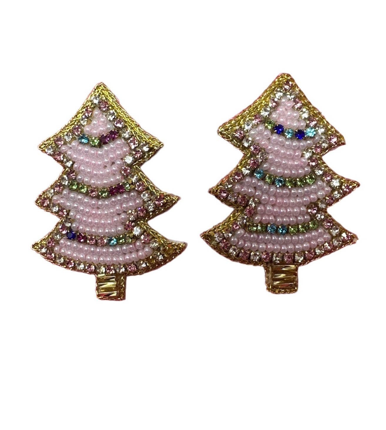 These hand-beaded Sparkle Christmas Tree Stud Earrings in pink add a festive touch to your holiday attire. Crafted with attention to detail, each earring features delicate beads that catch the light beautifully, offering a subtle shimmer perfect for seasonal celebrations. Lightweight and comfortable, they are suitable for extended wear at parties or family gatherings. Their unique design brings a playful yet elegant flair, making them an ideal accessory to complement your festive outfits throughout the holiday season and beyond.