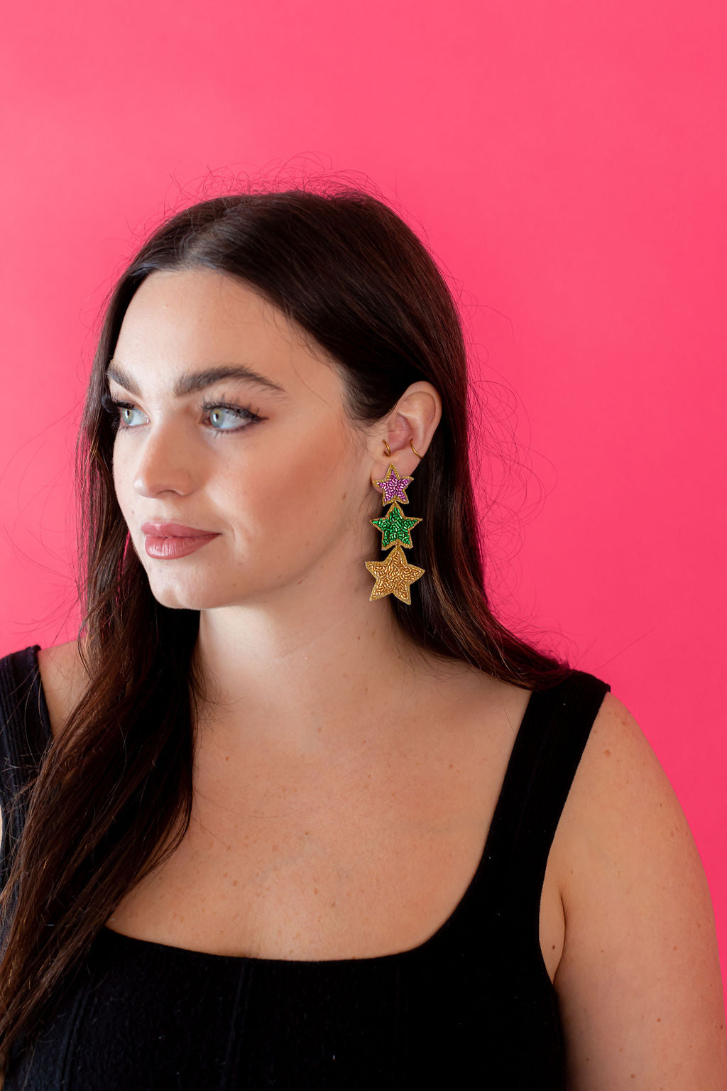 These Mardi Gras Star earrings are perfect to wear all throughout carnival season! These are designed in house and exclusive made for Golden Lily.